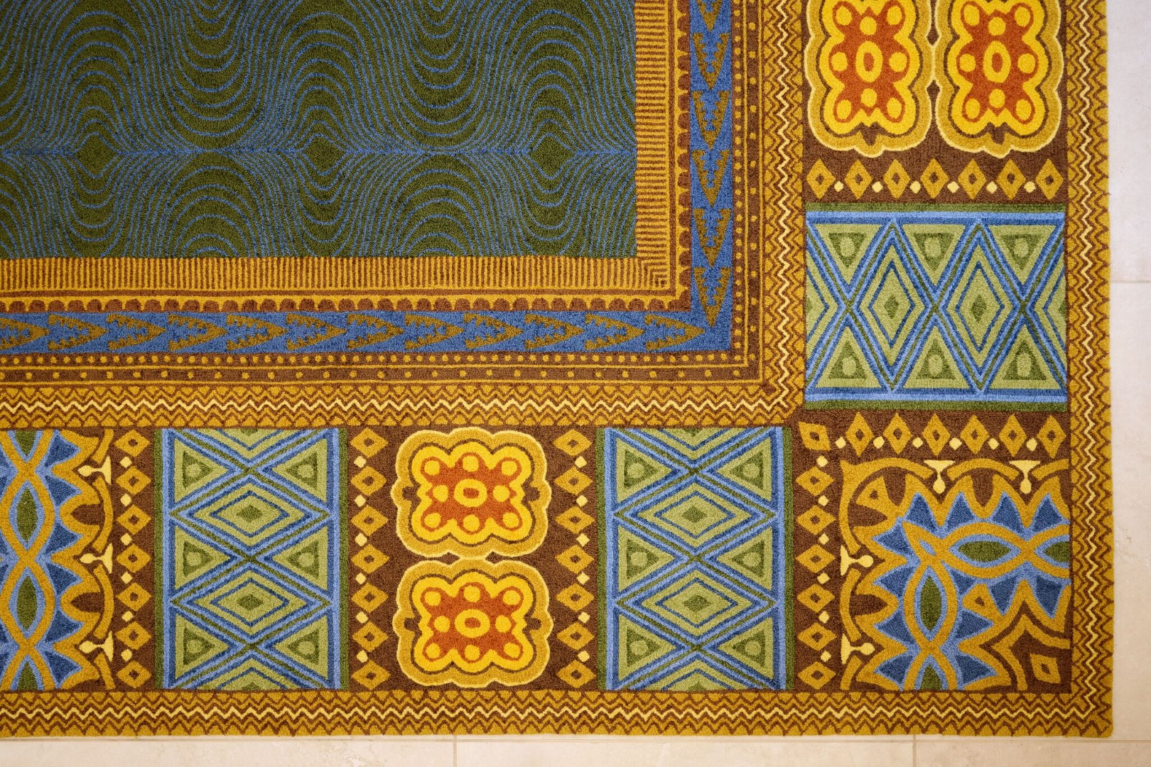 The exterior designs feature the African lily (agapanthus) along with circles and repeated patterns with native influences.