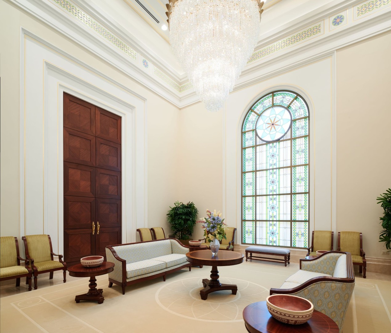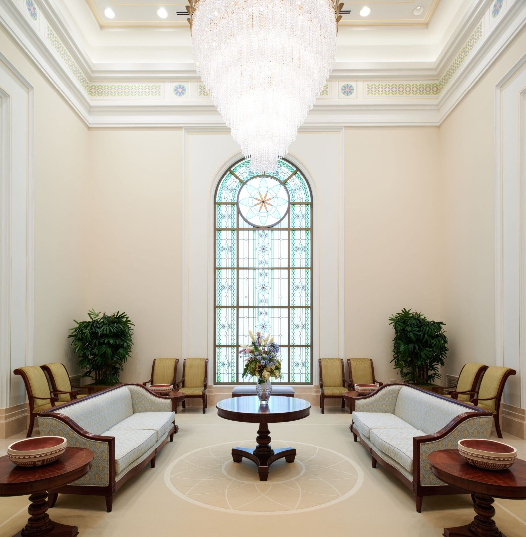 Unlike the rest of the temple, the celestial room uses door hardware with a French gold finish, giviing it a unique and elevated look.