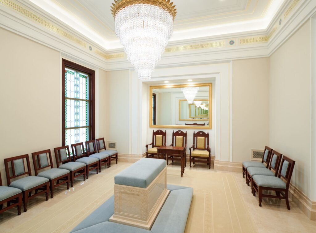 There are two instruction rooms int he temple, one each to either side of the rear central celestial room.